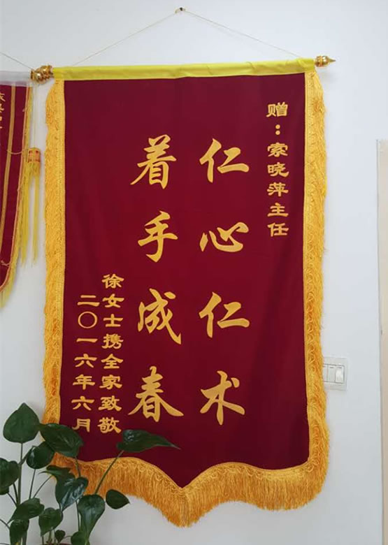 看着索主任墙上那么大的一个旌旗,前来就诊的患者总是忍不住望上一眼,她们或许在想:如果能让我怀上孩子,我也愿意送个旌旗。