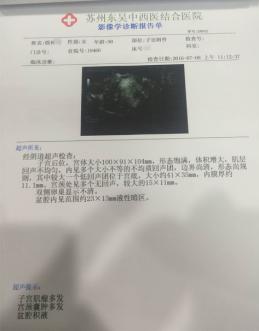 7月8日上午,来自相城的殷女士在丈夫的陪同下来院检查,接诊的是妇科王正娟主任,据王主任介绍:“殷女士来院时已经出现腹部凸起,下腹部轻压疼痛的情况。”根据殷女士本人当时的阐述,她在10年前就已经查出了有2cm的小肌瘤,一开始并没有在意,但小肌瘤慢慢的随着时间逐渐变大,一年前已经出现经期延长、经量增多、伴头晕的情况,之前一直由于工作忙而没有时间,现在退休了就想着赶紧把这个肌瘤摘除。随后,王正娟主任就安排了殷女士做了B超检查,超声提示:子宫肌瘤多发、宫颈囊肿多发、盆腔积液。”