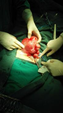 7月12日上午9时许,由金雁主任、曾志贤院长、朱雨云等医生为殷女士X行经腹子宫次全切除术,术中同时分离盆腔粘连,清楚盆腔内子宫内膜异位病灶。手术过程中,通过盆腔探查发现子宫呈不规则增大,凹凸不平、如孕3月余,质硬,子宫前壁、右壁、宫底、后壁分别出现3-6cm肌瘤共计十来个。可喜的是,因术前准备充分、术中处理得当,镜下缝合技艺娴熟,整个手术历经1小时50分,子宫肌瘤终于被摘取。