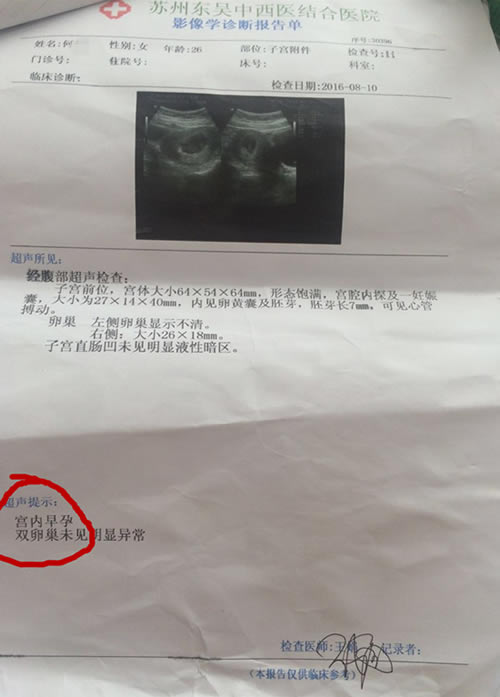 何铃的B超检查单