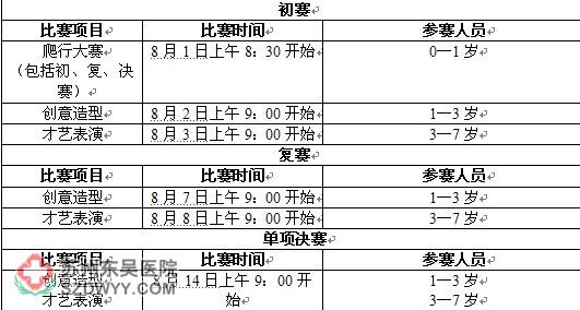 同时,因为大赛报名形势火爆,参赛宝宝人数超过预期,大赛组委会为此特别对大赛赛程做出相应调整,请相关组别报名参赛者按以下赛程时间前来参赛: