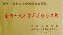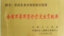 中西医结合治不孕不育,喜报姑苏千万家--对东吴中西医结合医院不孕不育专科来说,2010年是一个喜报连连,硕果累累的“丰收年”。截止2010年12月20日,东吴中西医结合医院共成功治愈不孕不育患者4385例,2010年全年治愈1124例。为表彰在不孕不育诊疗领域做出的突出贡献,中国医师联合会、中国妇女儿童事业发展中心特授予东吴中西医结合医院“不孕不育诊疗突出贡献奖”与“”的荣誉称号。
