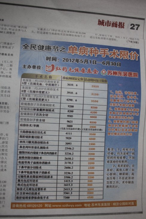 >> 《城市商报》: 健康节之单病种